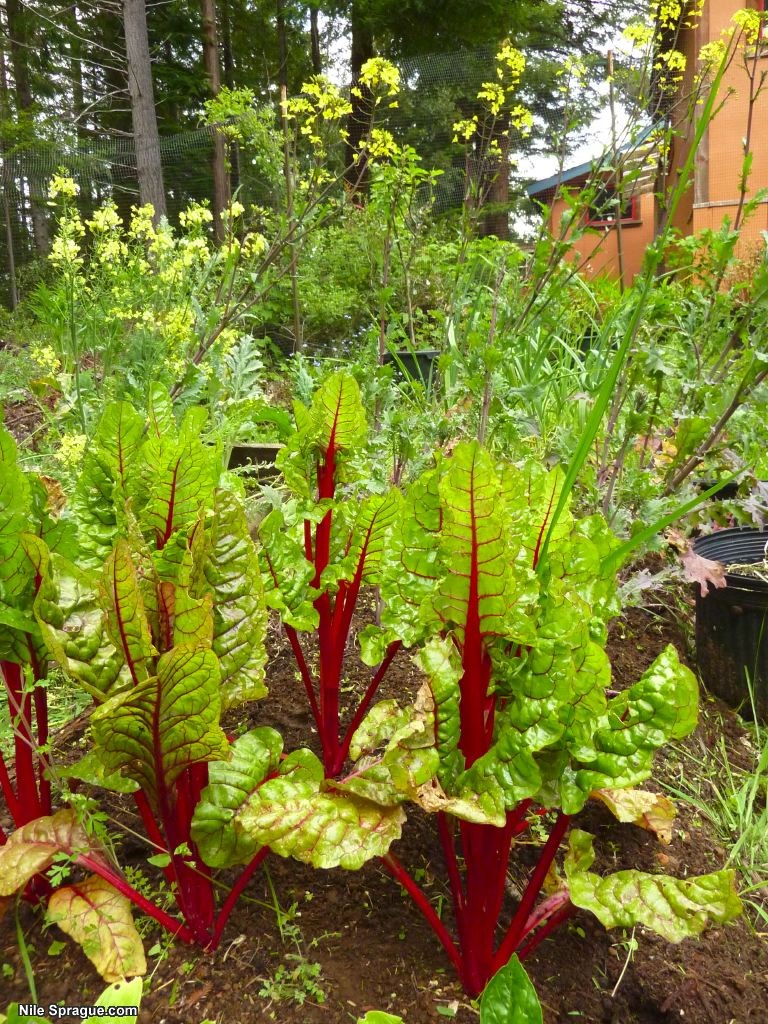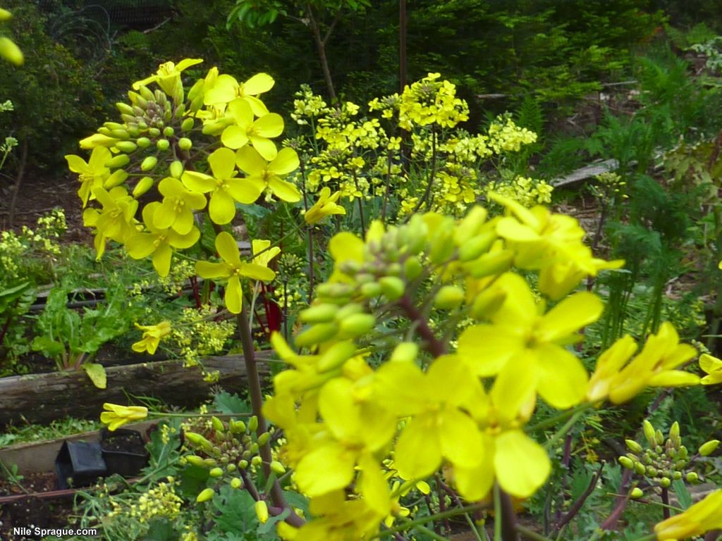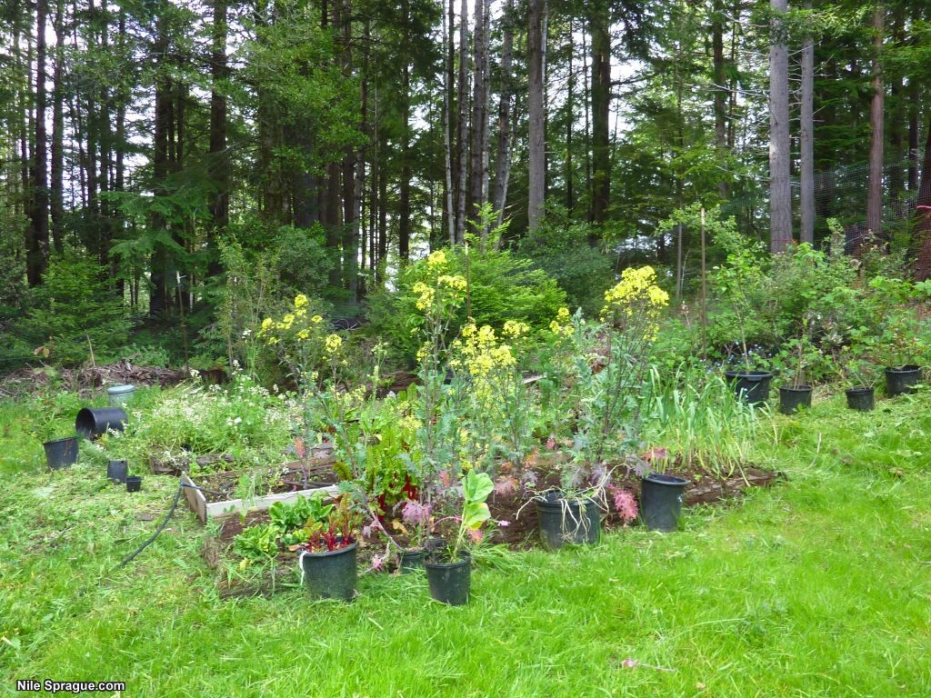 I went back to my home in Mendocino Wednesday last week after three months away, to find my garden overgrown, with huge kale plants as tall as I am, with yellow flowers on top, broccoli and arugula going to seed, an artichoke, lots of chard, and everything looking very happy. I’ve been working outside every day since. I’m pulling out the old stuff and starting new lettuce, kale, broccoli and arugula. I also spent several hours cutting grass around the place, and it’s coming together nicely – it looks good. Oh, and I dug my dahlia tubers, and now have tons and tons to replant and share and swap with friends. My young cherry tree has some green fruit growing on it, and the peach is looking good as well. I’m planting rows of flowers along the fence near the hot-tub, and in other spots, and it should all be very beautiful (or tasty) this summer. It feels great to be outside working in the garden and taking a break from the computer.